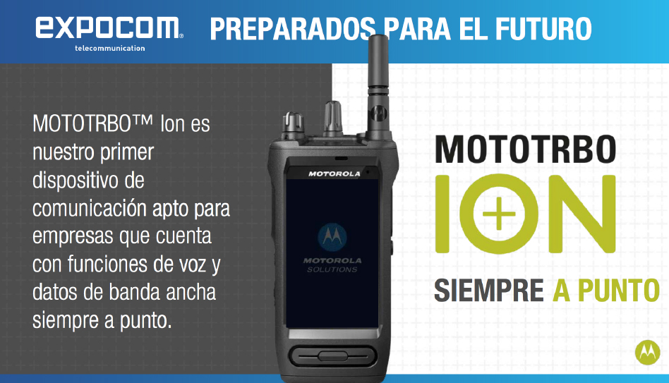 Expocom, Motorola Solutions Platinum Channel Partner, certificado  con el más alto nivel de calidad en su servicio, instalación, mantenimiento y atención al cliente de todos los productos de Motorola Solutions, presenta el nuevo terminal  MOTOTRBO™ R7, la nueva Radio Digital Portable de Dos Vías. MOTOTRBO R7 ofrece capacidades de audio revolucionarias en...