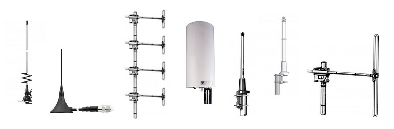 La gama antenas de base Amphenol-Procom es un ejemplo de antenas modernas que comprende antenas activas de recepción, antenas polarizadas circularmente, antenas directivas, antenas omnidireccionales, antenas multibanda, antenas yagi y antenas dipolo.