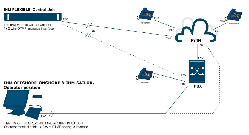 La opción HM108/1 se puede conectar directamente a una radio mediante 4 hilos o por VoIP a una radio con el controlador IP COM-53.