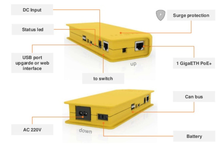Gracias al PoE (200 AC) la TW-IDU NODE puede alimentar a cualquier equipo estándar o no, como cámaras IP, teléfonos IP, centralitas, puntos de acceso, switches, CEPs, routers, garantizando la tensión de salida incluso en caso de apagón.